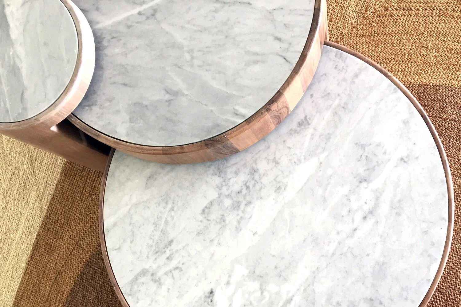 NestingCOFFEE TABLE The AR DESIGNED NEStING table is handmade to order by expert artisans with sustainably sourced hardwoods and imported ITALIAN MARBLE. Inquire To Purchase UNIQUE