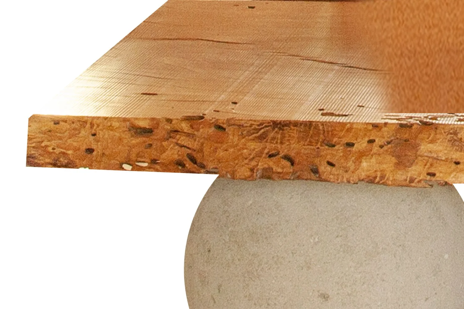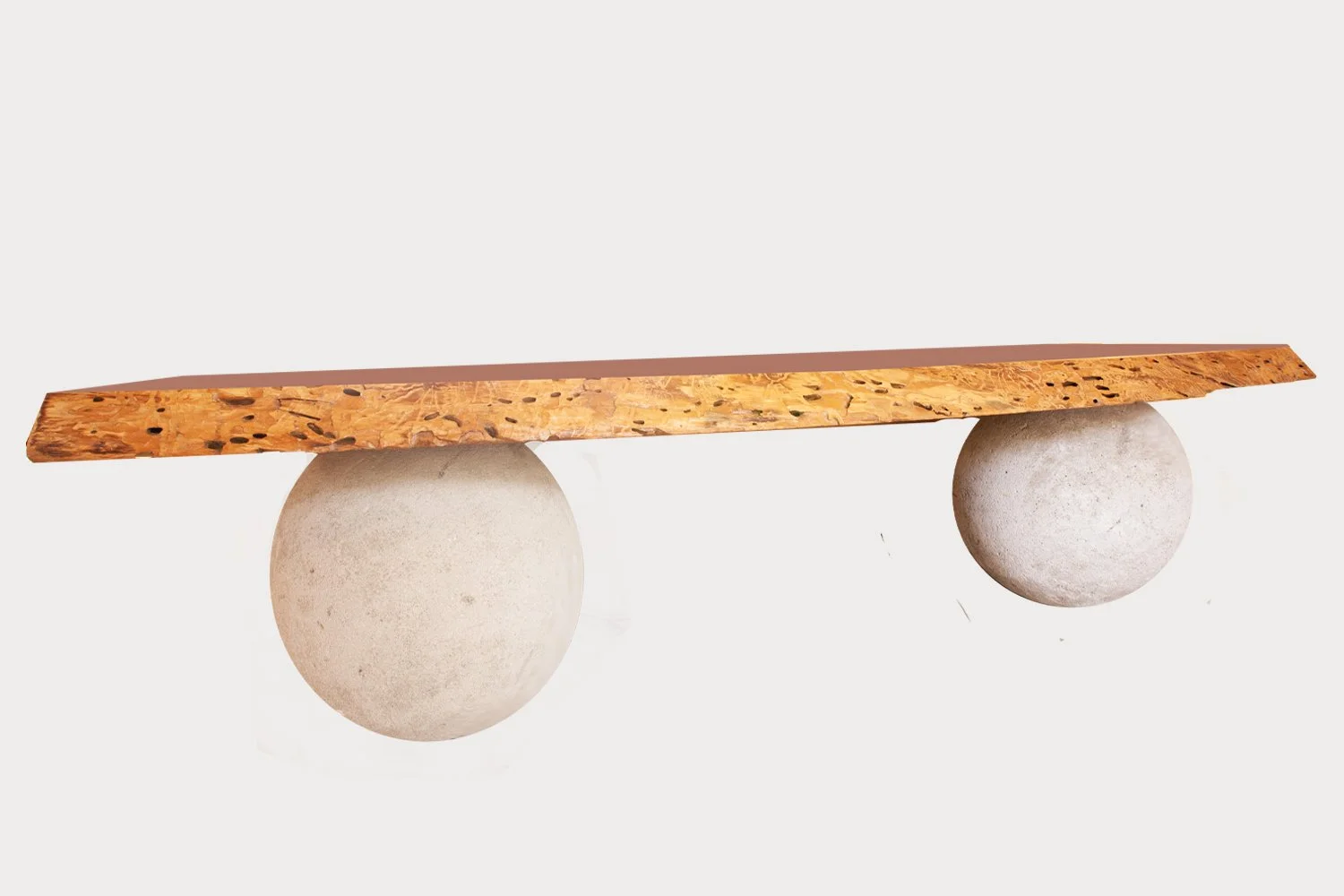 WOOCETABLE CRAFTED FROM RECLAIMED WOOD SLABS & FOUNDED ON SOLID FORMED CONCRETE SPHERES Inquire To Purchase SUSTAIN